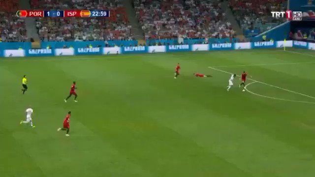 Goncalo Guedes dan Cristiano Ronaldo memimpin serangan untuk Portugal. Dan di menit ke-3 saat Ronaldo melakukan penetrasi ke dalam kotak penalti Spanyol, malapetaka pun tiba!